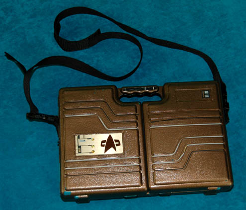 This is a 24th century carry case the style of which made appearances in feature films set in the 24th century, later seasons of Star Trek: Deep Space Nine and possibly Voyager. The case was originally blue but custom painted brown with small metallic applications to simulate control features. On … |