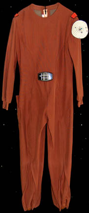 A brown Class-D Starfleet uniform jumpsuit featured in Star Trek I: The Motion Picture. The costume features an affixed bio-monitor, a pair of sciences orange division-rank strips with a single thin gold thread embellishment indicating rank, and a shoulder mounted Earthbase patch depicting the solar system, literally hanging on by … |