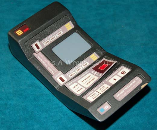 A prop TR-560 Tricorder VI made for use by Starfleet personnel during the first two seasons of Star Trek: The Next Generation. It is made of wood painted gunmetal gray with multiple applications depicting faux buttons and a screen. It does not close or open. The label on the lower … |