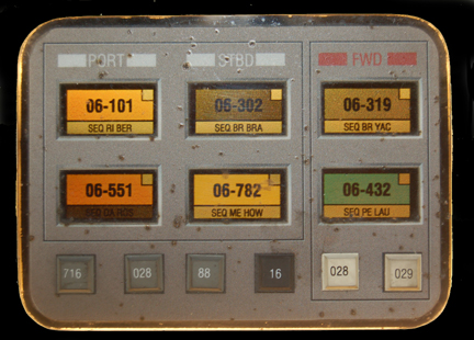 A console inset panel like those appearing variously in episodes of Star Trek: Enterprise. The item is smoked acrylic with a graphical application adhered to the face and reverse of the item that depicts a series of multi-colored indicator lights best viewed when back lit by an external light source. … |