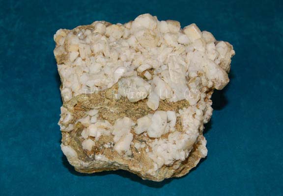 A mineral formation acquired for use in Star Trek episodic television. The item is a cluster of milky white colored minerals with sparkling gold colored metallic growths appearing generally. The item measures approx. 6 X 6.5 X 4.25 inches. |