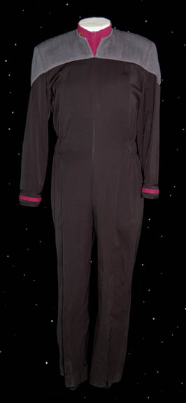 | (Paramount-TV, 1987-94) Two original Starfleet uniforms from Star Trek: The Next Generation. One being a black & gold female cadet’s uniform jumpsuit, and the other a future female black & maroon duty uniform. |