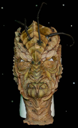 A pair of small cast resin props featured in the Star Trek: Enterprise episode “Borderland” wherein members of the “Enterprise NX-01” crew like “T'Pol” (Jolene Blalock) are beamed onto ‘Orion’ starships and sold in a slave market. While in cages, the crewmembers are made to wear “neurolytic restraints” which cause … |