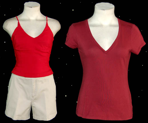“Captain Janeway” (Kate Mulgrew) was captain of the U.S.S. Voyager throughout the Star Trek: Voyager series. These pajamas were made for wear by Janeway on the show. They include a gray satin tunic top with clear snaps in the front and corresponding gray satin trousers. Due to time and use … |
