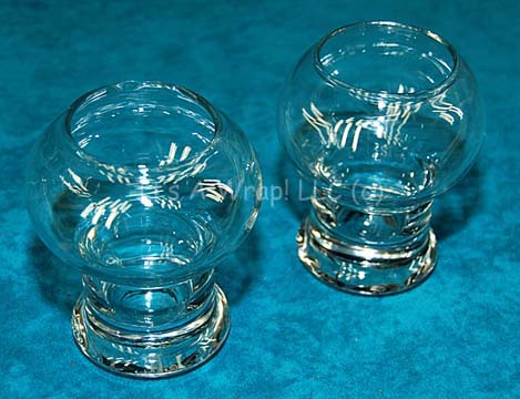 A lot of two glasses similar to those featured in Star Trek: The Net Generation episode “Relics” and variously throughout the rest of the series in Ten-Forward. This lot consists of two such glasses which have a small but then expand out to a larger, round body with a small … |