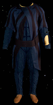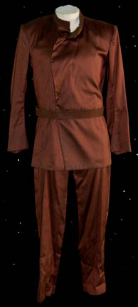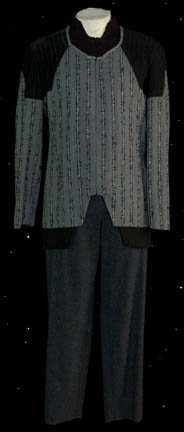 A costume featured in the Star Trek: Voyager episode “Counterpoint”, wherein the “Voyager” crew attempts to smuggle telepaths through a region of space whose inhabitants would persecute them. The costume is for wear by veteran Star Trek actor Randy Ogelsby in the role of “Kir”, one of the Brenari telepathic … |