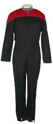 VOYAGER: STARFLEET COMMAND RED-MALE UNIFORM JUMPSUIT This is a Star Trek VII: Generations-style uniform jumpsuit that continues use through Deep Space Nine and Voyager. It is a black uniform with command red shoulders and it zips up the front to just below the color line, while it ends with black … |