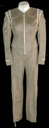 A costume featured in the Star Trek: The Next Generation episode “Preemptive Strike” wherein “Ensign Ro Laren” (Michelle Forbes) attempts to infiltrate a Maquis cell. The costume is a full-length, long-sleeved, jumpsuit of a two-tone olive color and checkered pattern in various shades of brown, pleated front, zips down the … |