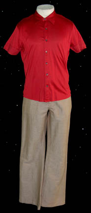 A costume featured in the Star Trek: The Next Generation episode “Redemption” for wear by Whoopi Goldberg in her portrayal of “Guinan” during which she attempts to convince “Worf” (Michael Dorn) of his commitment to honor and the truth. The costume is textured trousers and crushed velvet top with shoulder … |