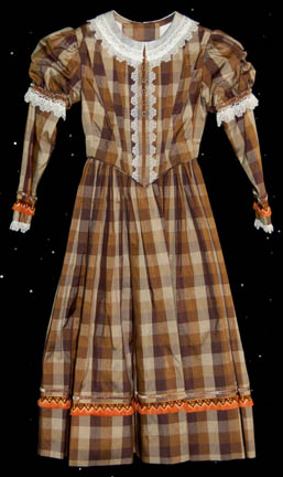 “Lady Beatrice Burleigh” (Lindsey Haun) was the daughter of “Lord Burleigh” (Michael Cumpsty) and featured in the Star Trek: Voyager episode “Learning Curve”. She and her father were characters in “Captain Janeway's” (Kate Mulgrew) holodeck program ‘Janeway Lambda one’. This adorable period dress is brown check with cream lace around … |