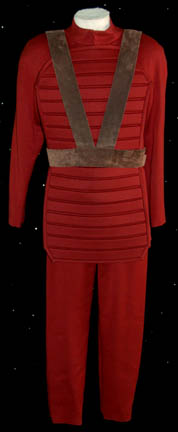 A costume featured in the Star Trek: Voyager episode “Ex Post Facto”, wherein “Lieutenant Paris” (Robert Duncan McNeil) is convicted of murder but denies the charge even though the victim's own memories seem to convict him. The costume is for wear by Ray Reinhardt in the role of the Banean … |