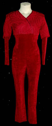 “Dala” (Kaitlin Hopkins) was an alien con artist who impersonated “Captain Janeway” (Kate Mulgrew) in the Star Trek: Voyager episode “Live Fast and Prosper” in order to obtain different goods by offering services she and her partners didn't deliver. The Starfleet jumpsuit is dark gray with Command red shoulders, a … |