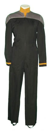 A full-length engineering jumpsuit from the feature film Star Trek X: Nemesis with Velcro size adjustments at the cuffs and ankles, a zip running up the center seam that clasps at the top, a matching belt with clasps, and a Velcro patch for a Starfleet combadge (sold separately). A sewn … |