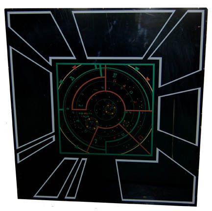This is a Cardassian shatter panel in the LCARS style presumably used as set dressing during the Star Trek: Deep Space Nine series. The black acrylic panel has white silk screen detail on the front, framing the center square that can be seen best when backlit from behind (Backlighting not … |