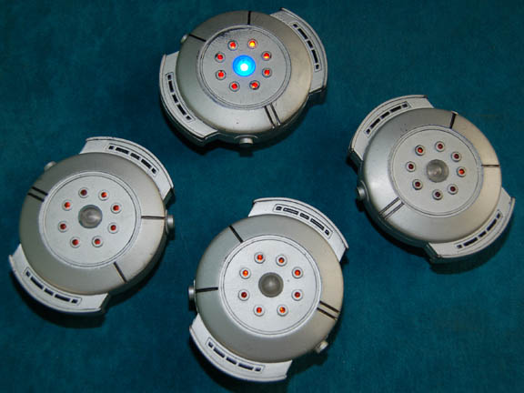 A set of three one molded resin and three molded rubber prop ‘explosives' featured in the Star trek: Enteprise episode “Zero Hour” where they were used by “Captain Archer” (Scott Bakula) to destabilize the reactor on board the Xindi super weapon, and then blow up “Commander Dolim” (Scott MacDonald). The … |