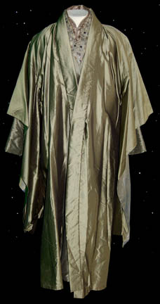 A set of Romulan senator's robes featured in the opening scenes of Star Trek X: Nemesis. This gold themed robe is composed of a Mandarin-style collar dickie with ties in the back, an inner robe with long sleeves, and an outer robe with long bat wing type sleeves. The costume … |