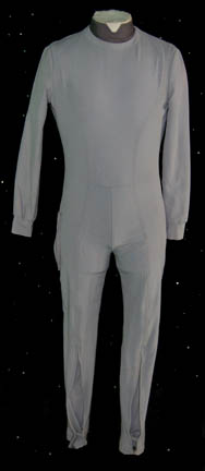 An intricate navy blue vinyl jumpsuit with matching gloves and a Velcro affixed shoulder and arm wrap made from neoprene that snaps into place around the arms and to a matching harness at the waist. Presumably used by Talaxian miners on an asteroid in the episode “Homestead” of Star Trek: … |