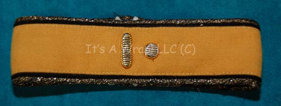 A Starfleet officer’s division strip like those appearing in Star Trek feature films. The item is a gold colored fabric strip on a black felt backing with gold colored trim. The engineering gold section features a ‘5 year service’ pin and a commendation bar each made from gold colored metal. … |