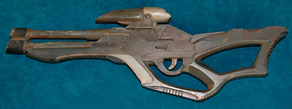 A prop carbine weapon featured in the Star Trek: Enterprise episode “Marauders” wherein a group of deuterium miners is frequently accosted by a group of Klingon raiders until the “Enterprise” crew shows up and helps them find a way to fight back. Made from sturdy cast rubber, painted metallic silver … |