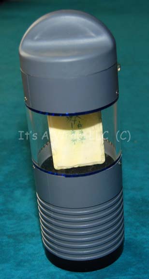 A prop item featured in Star Trek: Enterprise episodes like “Vanishing Point” and “The Forge”. This prop item is a “Sure Fire”, high-powered, LED flashlight in gun-metal gray featuring a gray plastic housing added for the electronics of three light-blue LEDs near the front of the item and activated by … |