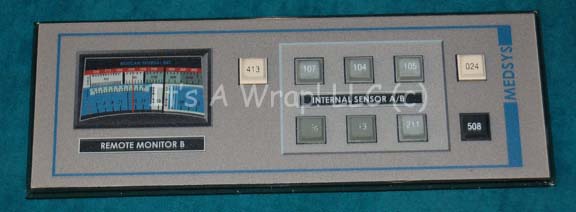 A piece of set dressing similar to those featured throughout Star Trek: Enterprise. This item is a piece of smoked acrylic with a gray, graphical application adhered to the front, beveled edges, and a series of black, white, and grey faux rubber buttons featuring a label that reads ‘Internal Sensor … |