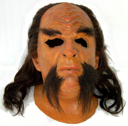 This incredible full head Klingon mask was used in Star Trek VI: Undiscovered Country, during a courtroom scene that involved around 200 Klingons. In order to dress that many actors in Klingon makeup, the background actors in the upper balconies wore these full faced masks to make the process quicker … |