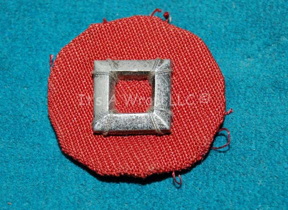 A metal badge sewn onto a placement made to represent the Starfleet rank of ‘able seaman’ in Star Trek feature films. The item is a metal square badge with an empty center on a red uniform placement. The item measures approx. 1.25 inches diameter. |