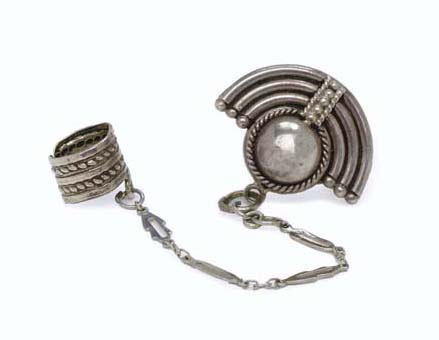 Two silver earrings in the Bajoran style -- each worn separately by Nana Visitor as Major Kira on <I>Star Trek: Deep Space Nine</I> (2) |