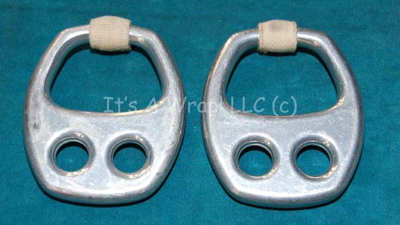 A pair of metal rigging loops used as part of a Starfleet engineer’s white radiological costume appearing in feature films like Star Trek II: The Wrath of Khan and Star Trek VI: The Undiscovered Country. The items are ‘EDELRID’ name brand climbing harness loops used for rock and mountain climbing. … |