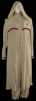 This desert costume was made for wear by “Commander Sisko” (Avery Brooks) in the Star Trek: Deep Space Nine episode “Shadows and Symbols” in which he went to the desert planet Tyree on his search for the mystifying “Orb of Emissary”. The costume includes a cotton robe with a hood, … |