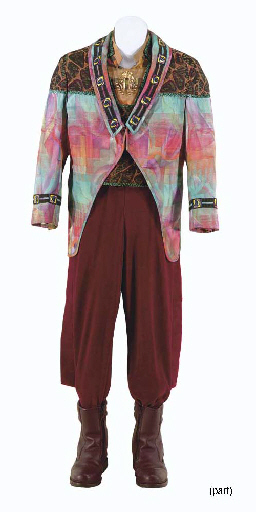 Four costumes made for Armin Shimerman as Quark in <I>Star Trek: Deep Space Nine</I>, comprising: Quark's "cranberry stripe" suit with shirt, vest, and jumpsuit; Quark's costume from "Necessary Evil", comprising: a brown tweed jacket, geometric pattern shirt, and orange-green knit jumpsuit; Quark's "rainbow" suit, consisting of jacket, shirt, vest, and … |