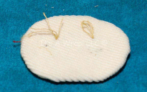 A costume accessory rank placement for a Starfleet uniform like those appearing variously in Star Trek feature films. The item is an oval shaped white fabric piece folded over for neat edges with white batting inside for width made for placement on a Starfleet engineer’s white radiological uniform. The item … |