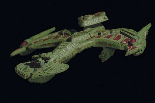 A Klingon spaceship visual effects model -- <I>33x24in.</I> -- designed by Rick Sternbach, first seen in "All Good Things" in <I>Star Trek: The Next Generation</I> and later during the Dominion War arc in <I>Star Trek: Deep Space Nine</I> |