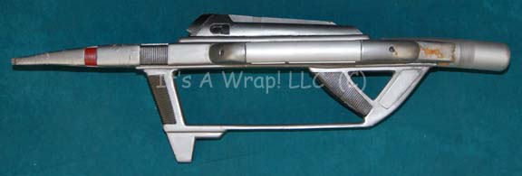 A molded rubber prop Starfleet compression phaser rifle like those appearing in various episodes of Star Trek: Voyager. The item is painted two tones of metallic silver, features a later series ‘scope’ with a light mount facing forward that has not proven to function for anything other than its presence, … |