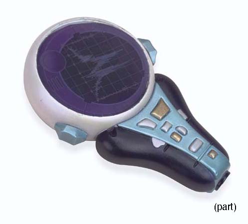 Three prop Vulcan scanners, one "hero" version with built-in untested backlighting, one stunt copy made from foam rubber, including a fabric belt pouch with magnetic closure -- <I>5½in. high</I> -- scanner and "hero"version used by Jolene Blalock as T'Pol in <I>Star Trek: Enterprise</I> (3) |