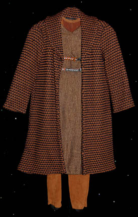 A costume featured in the Star Trek: The Next Generation episode “Unification: Part II” and reused in Voyager. This costume consists of a ¾-sleeved, knee-length tunic in the Romulan-style, with vertical stripes in various shades of brown, black, and green, brown trousers and pumpkin colored socks. A sewn in Voyager … |