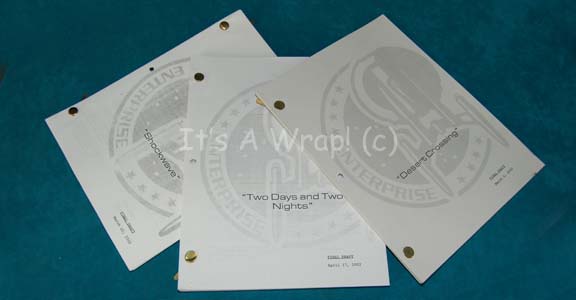 A lot of three scripts from the first season of Star Trek: Enterprise. The first script is for the episode “Two Days and Two Nights”; wherein we see our first chronological look at the pleasure planet of “Risa” and the command crew of the “Enterprise NX-01” has varying adventures and … |