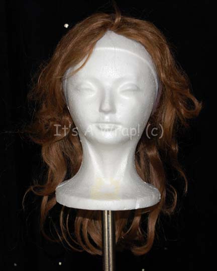 A costume element featured in various episodes of Star Trek: Voyager for wear by Kate Mulgrew as “Captain Kathryn Janeway”. This item is a wig to be worn on the back of the head, made to hang and make the hair look longer, it has a simulated ‘scalp’ underneath to … |