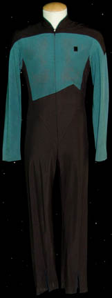 A Star Trek: The Next Generation male Sciences blue Starfleet uniform made for wear during the series, ‘The Next Generation' movies and/or Deep Space Nine. The jumpsuit is black with Sciences blue sleeves and upper torso. There is blue trim around the collar, a small Velcro patch on the left … |