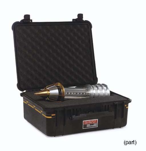Six plasma injector props made from lathed aluminum and brass with clear acrylic parts and interior lights, five include plastic carrying cases with foam fitted interiors, all -- <I>18x5in.</I> -- used in the engine room of <I>Star Trek: Enterprise</I> (6) |