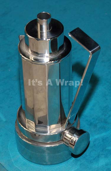 A prop or set dressing coffee percolator like those appearing variously in episodes of Star Trek: Enterprise on the set of the “Enterprise NX-01” captain’s ready room and situation room. The item is a Carlo Giannini name brand stainless steel percolator with a polished exterior. The item features a removable … |