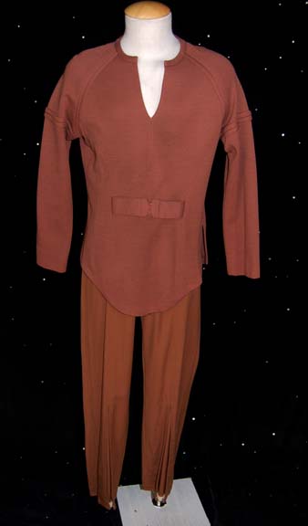 A velour <I>Star Trek: Original Series</I> pilot-style Starfleet uniform top, formerly sciences blue, now faded to mauve, with black series-style collar, zipper in back, and slits on cuffs -- believed to have been made for the <I>Star Trek: The Original Series</I> pilot episodes and subsequently modified for use in the … |