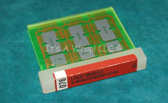 A prop item featured in various episodes of Star Trek: Enterprise. ‘Data modules' like these appeared in virtually every set of the show as set dressing and hand props. The item is a rectangular piece of plastic with a graphical application adhered to it identifying the device as ‘LOGIC MODULE’ … |