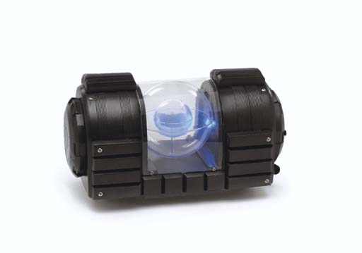 A prop "incubator module" made of cast resin and plastic, with a clear plastic holding cell with a prop human embryo, with battery-powered blue light -- <I>8in. long</I> -- featured in "The Augments" in <I>Star Trek: Enterprise</I> as one of the genetically-engineered "superhuman" embryos from the Eugenics Wars |