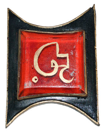 This beautiful piece of Vulcan jewelry was used during the filming of the Star Trek feature films. Made of resin, the piece is painted black with a raised opaque amber color center, gold trim and a gold painted Vulcan design in the center. There are four pairs of small holes … |
