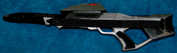A prop weapon similar to those featured in and after Star Trek: First Contact. This item is rubber cast in gray featuring black accents, a black, textured barrel, scope placement with a graphical application upon it and orange plastic accent, two faux buttons behind the scope, attached stock, and black, … |