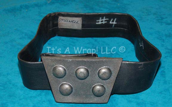 A black leather Klingon style belt featured variously in Star Trek episodic television or feature films. The item measures approx 33-37 inches and is of the variety that clasps at the end. The buckle is painted metallic silver with molded in wire loops on the reverse for wear at any … |
