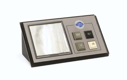 A prop computer console appearing variously in Star Trek episodic television. The item is a vacuum formed plastic terminal with a pair of smoked acrylic ‘display screens’ that feature graphical applications which can be backlit to reveal their ‘readouts’. The item is powered by a single Makita brand name 9.6volt … |