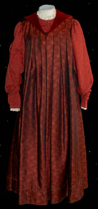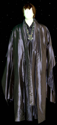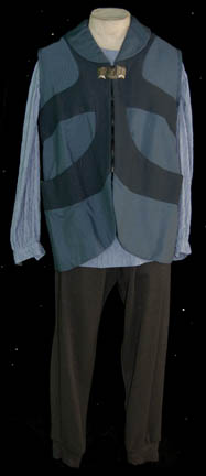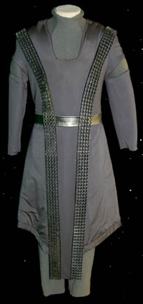 A Romulan senator’s robes featured in Star Trek X: Nemesis. The costume is a blue under robe with zips at the sleeve cuffs, an a geometrically patterned collar, an outer robe with kimono style sleeves, and a dickie with a mandarin style collar. The costume comes with a a pin … |