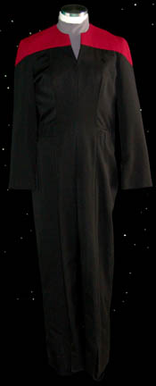 A costume similar to those featured in various episodes of Star Trek: Voyager but this particular uniform is distressed to emulate “battle damage” or some damage sustained during any number of attacks that “Voyager” was pummeled with during it's time in the Delta Quadrant. This costume is for wear by … |
